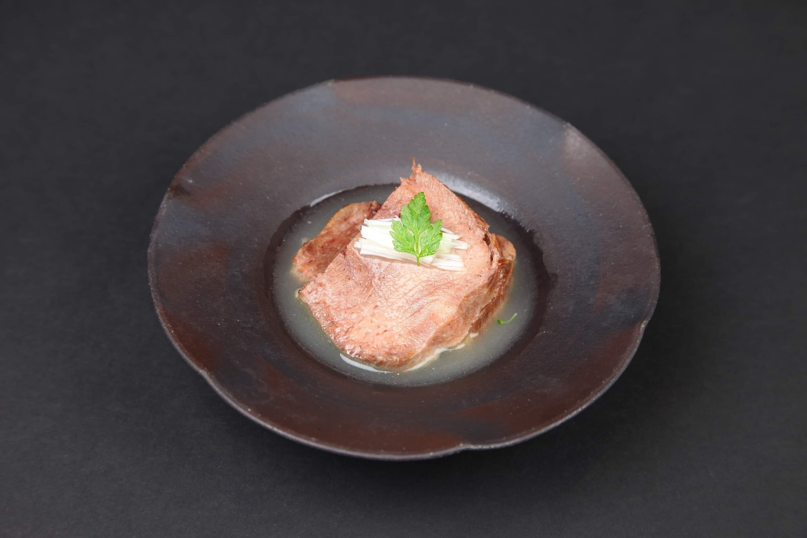 厳選した和牛のタンを柔らかく煮込みました。 塩おでんの盛り合わせの鍋の中で少し温めてお召し上がり下さい。柚子胡椒や黒胡椒、山葵など合います。少し塩をしても美味しいです。 タン好きにはたまりません。